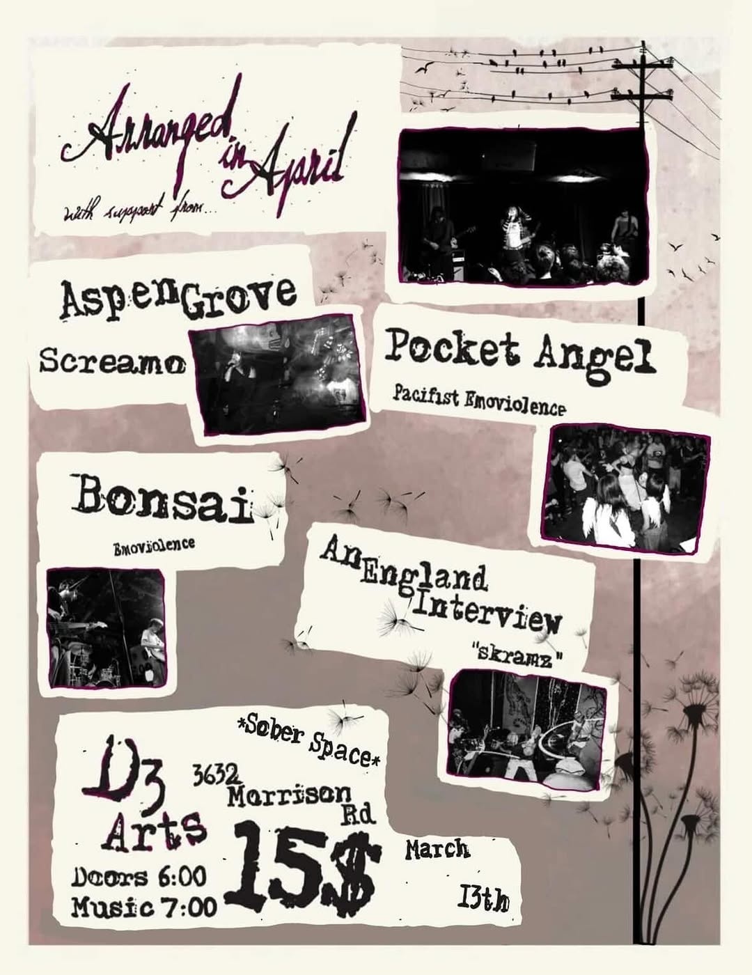 Arranged in August, Aspen Grove, Pocket Angel, Bonsai, An England Interview