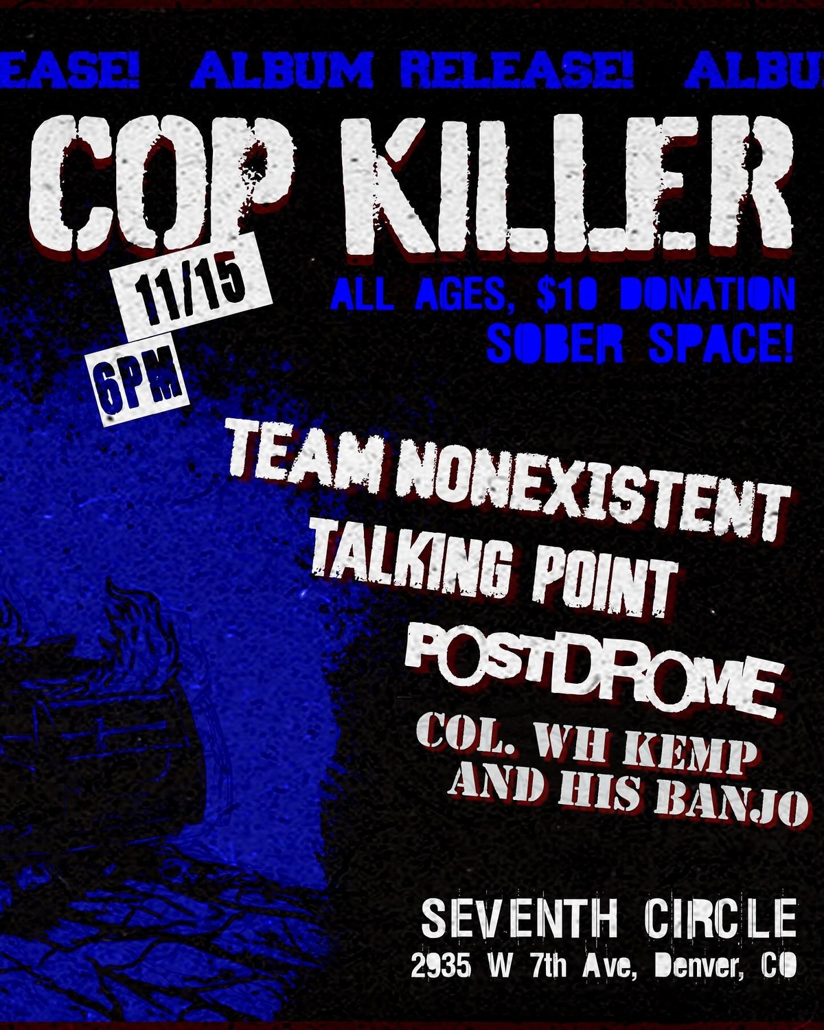 Copkiller, Team Nonexistent, Talking Point, Postdrome, Col WH Kemp