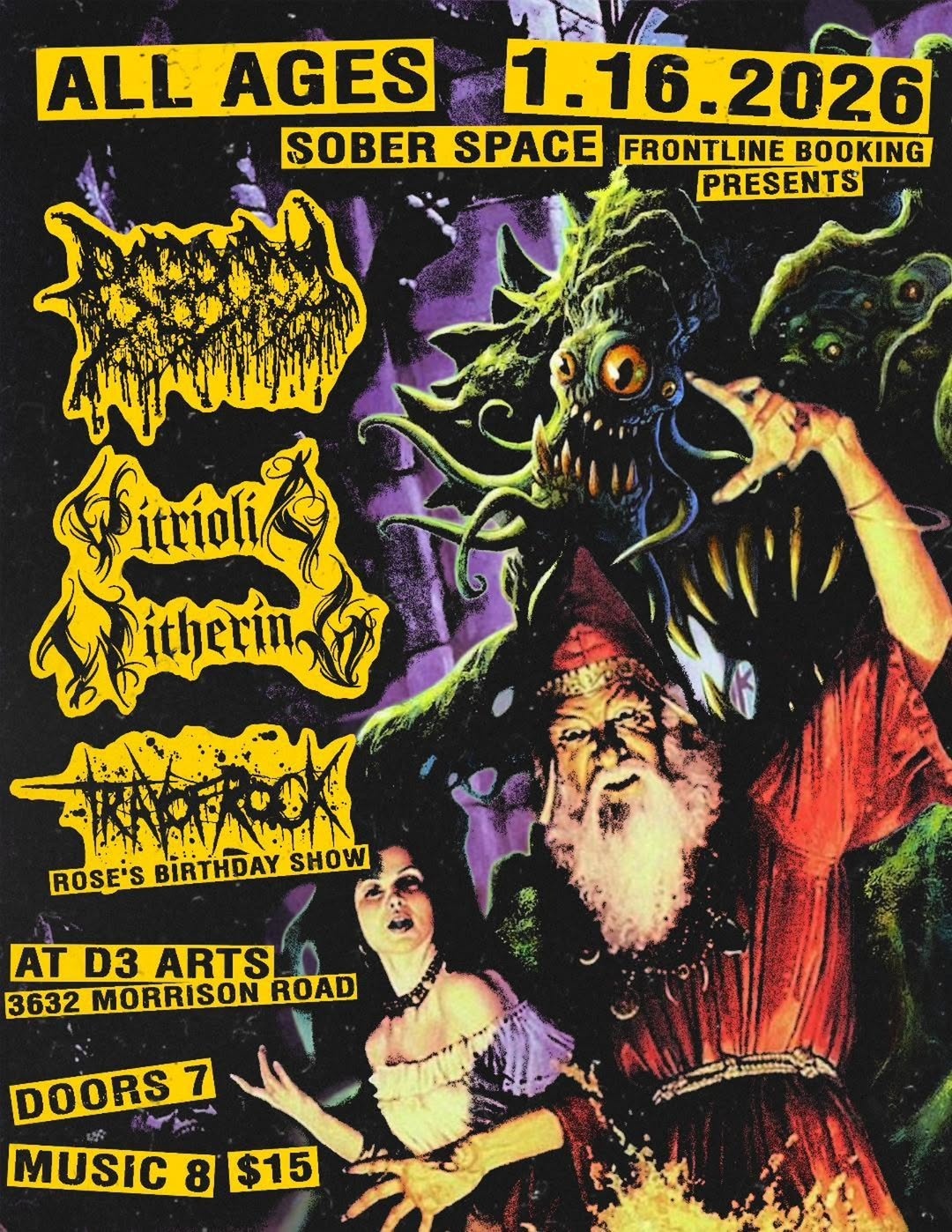 1/16/2026 at @d3artswestwood with @bogbody.dm @vitriolic.withering and @trayofrockband